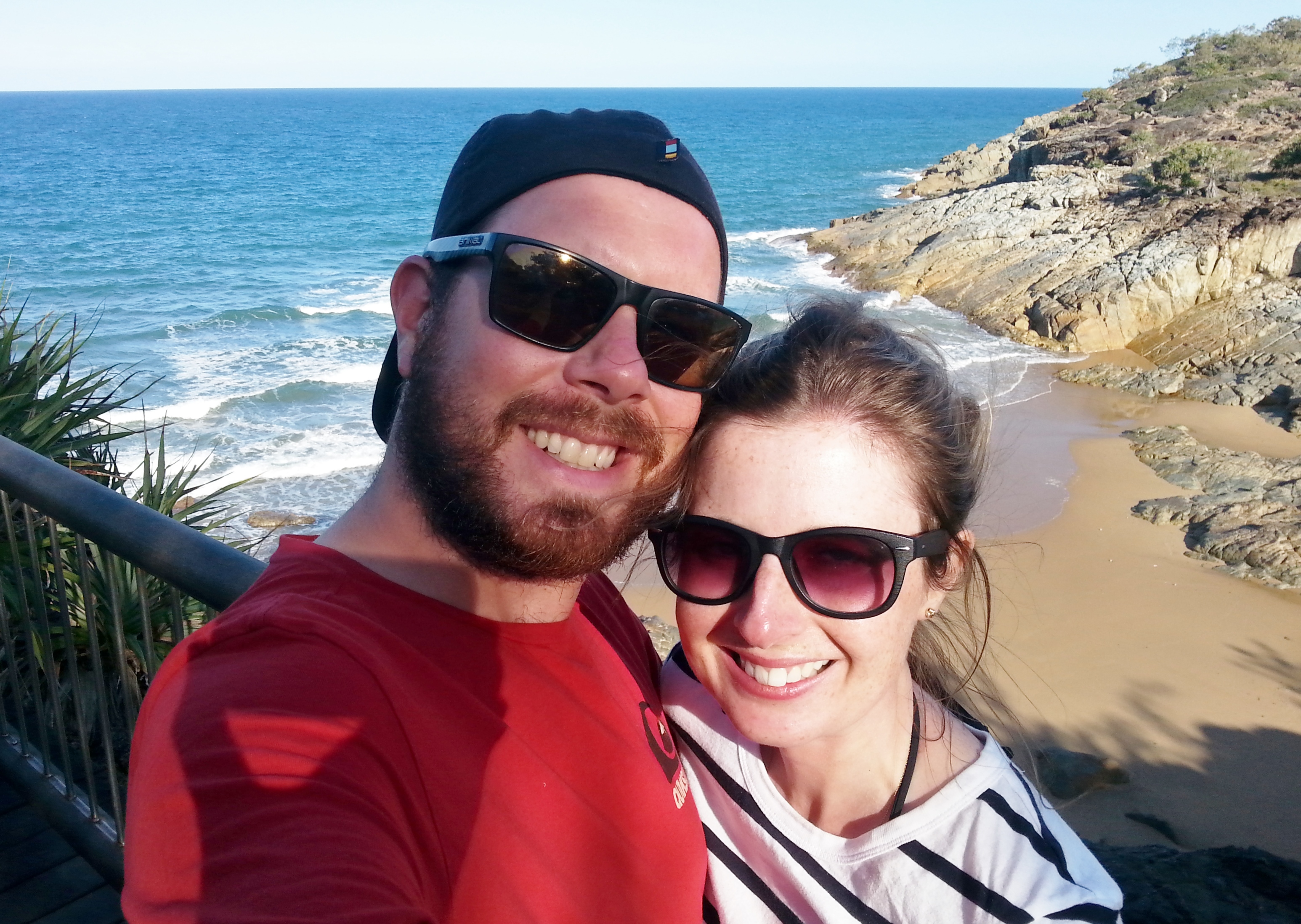 We checked into a nice b&b and made full use of the shower and laundry facilities before hitting town for fish and chips and gelato – bliss after our camping trip! After a good night’s sleep, we were back on the road again heading to our next destination, Seventeen Seventy, so called because it’s where Captain Cook made his second landing in Australia in 1770. After settling into our (third choice – blooming school holidays!) campsite, we made the short walk into town to watch the AFL (Australian Football League) final, which is apparently a big deal around here. I don’t think either of us had a clue what was going on (it’s kind of like American football but it makes less sense) but Pete pretended he understood and we enjoyed it all the same with a cold beer in hand and a beautiful view of the sea in front of us.