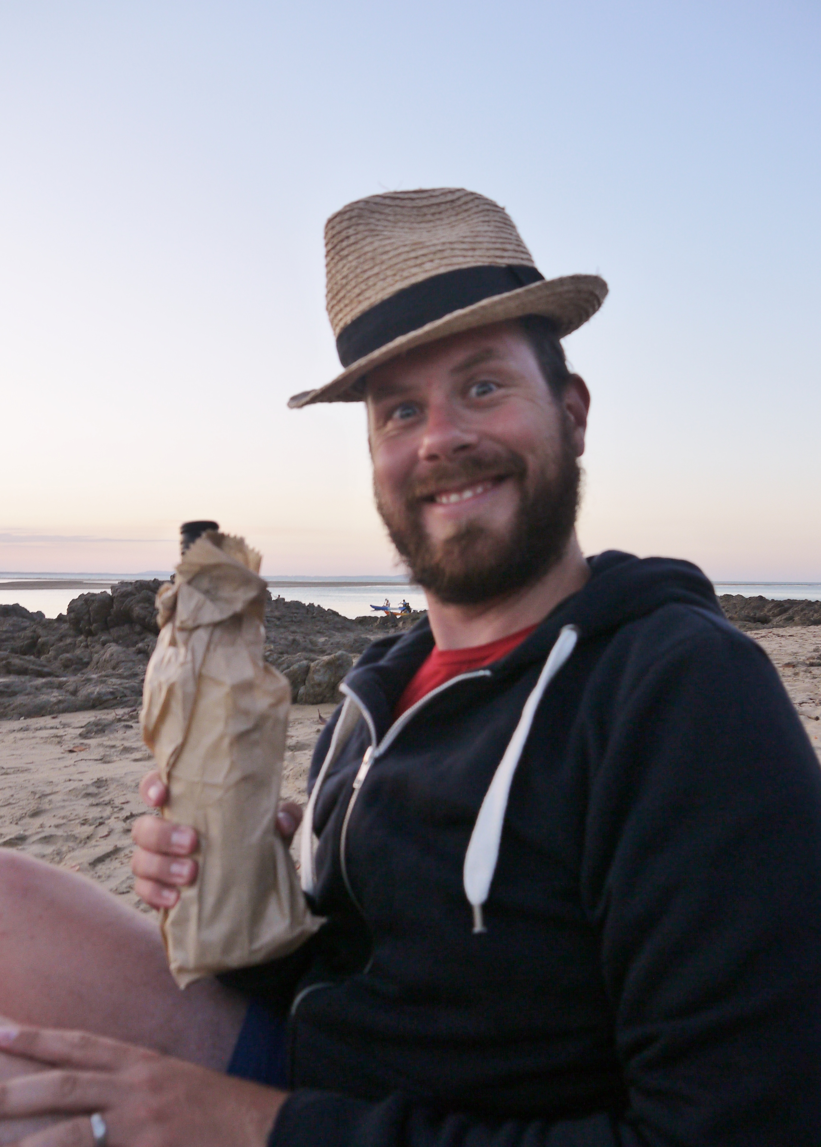Later, we had a great walk through some rainforest scrub to Bustard Bay where Cook’s ship, The Endeavour, landed. The views were spectacular and it felt pretty special to be standing in the place where Australia was discovered by the Western world. We took in the sunset at the beach with some wine in a brown paper bag in hand – a classy end to a great day!