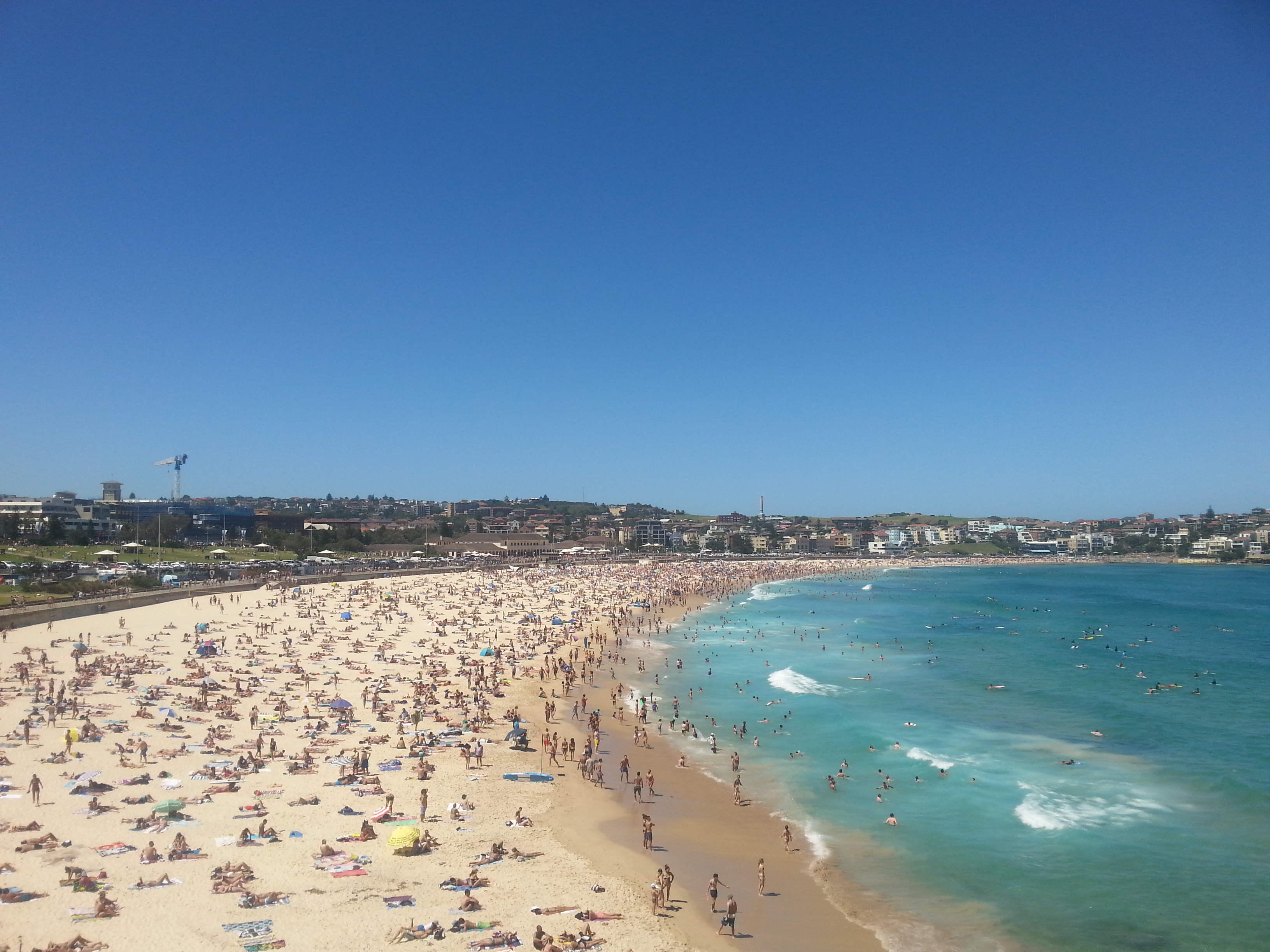We had a fantastic walk along the Coogee to Bondi boardwalk with stunning views out to sea from high up on the clifftops. All the beaches in the bays we passed were incredibly busy but it felt like a bit of a party atmosphere everywhere we went. We stopped at Bronte bowling club for a drink. It must have the best bowling club view in the world, high on the cliffs looking out to sea. Bowling isn’t just a thing for the elderly in Australia. People of every age go to the clubs to socialise and take advantage of the cheap drinks. There was a bbq cooking nearby and it just about drove us mad – unfortunately it was for members only!